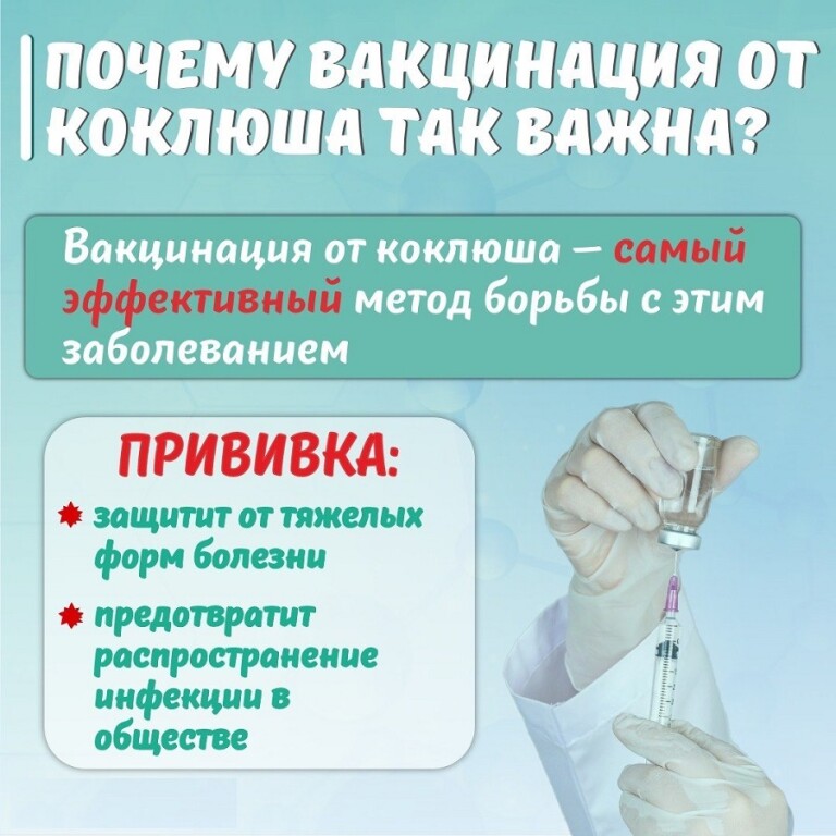 Несмотря на то, что в последнее время заболеваемость регистрируется и среди взрослых, коклюш по-прежнему относится к группе детских инфекций. Именно дети до двух лет рискуют заболеть больше взрослых и детей старшего возраста. Первую прививку против коклюша нужно ставить в три месяца, потом еще два раза — в 4 с половиной и 6 месяцев, также необходимо пройти ревакцинацию. Ребенок считается защищенным, когда он получил четыре дозы вакцины.