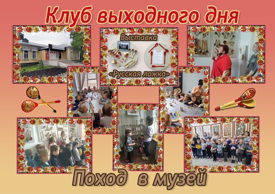24 апреля 2021 года в старшей группе (воспитатель Мозжерина Н.И.) прошел Клуб выходного дня с детьми и родителями под названием «Поход в музей». Сегодня мы получили большое удовольствие от посещения передвижной выставки «Русская ложка» Нытвенского Музея Ложки. Экскурсоводом нашего мероприятия была Колодкина Татьяна Леонтьевна. Мы познакомились с историей изготовления деревянных ложек на Руси, узнали о том, как и кто, изготавливал ложку, как ее расписывали, увидели ложки с традиционной росписью и резьбой, а также узнали о пословицах, поговорках и приметах, связанных с ложкой. Татьяна Леонтьевна провела с нами мастер-класс по росписи ложек и в качестве сувенира мы взяли её домой. Принимали участие в росписи ложек не только дети, но и родители.