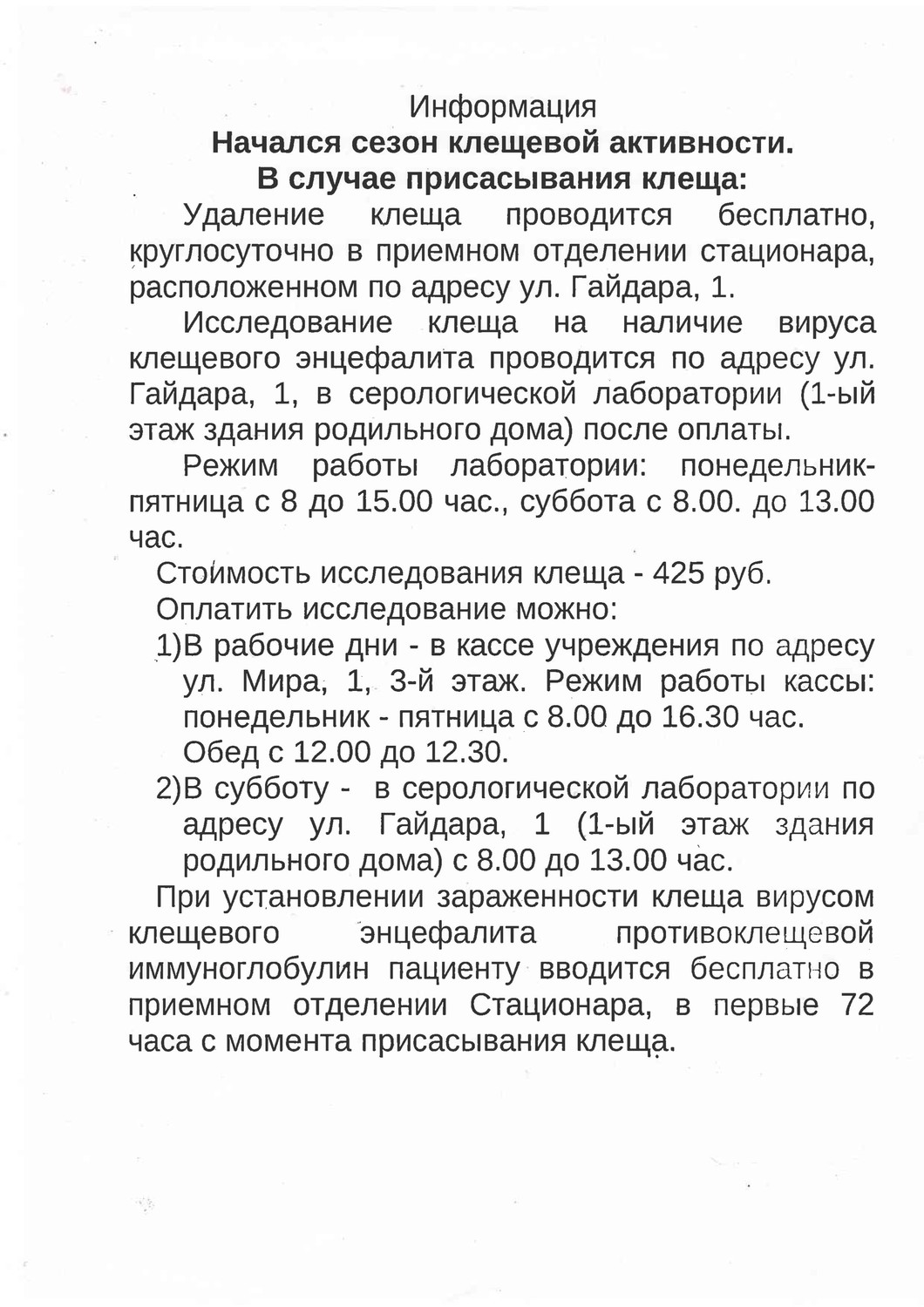 Напоминаем, лучший способ защиты от клещевого энцефалита - вакцинация. Поставить прививку можно по адресу ул.Мира, 1, каб. 128 - без записи.