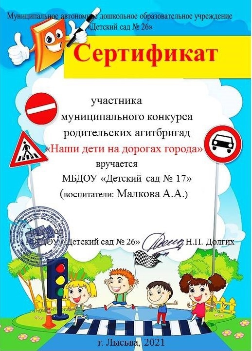 Команда родителей младшей группы, воспитатель Малкова Алевтина Александровна, участвовали в муниципальном конкурсе родительских агитбригад "Наши дети на дорогах города" Спасибо вам большое наши родители за интересную познавательную сказку про Колобка, который знал правила дорожного движения.