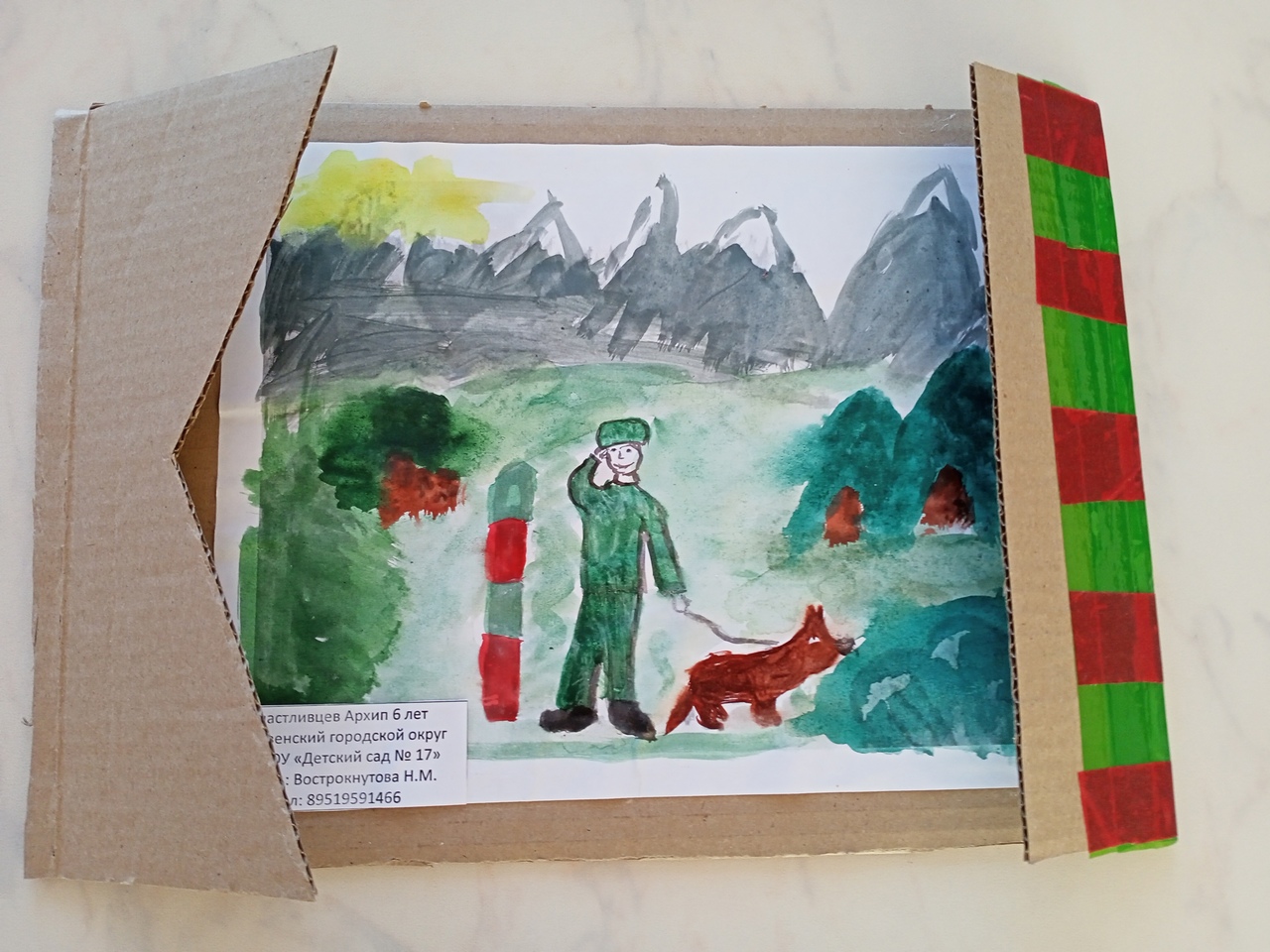 Подведены итоги конкурса детских рисунков "Граница на замке", проведённого Пермской краевой общественной организацией "Союз пограничников Прикамья" и Пермским краевым отделением ВООВ "Боевого братства". Счастливцев Архип занял 1-е место (воспитатель Вострокнутова Н.М.). Поздравляем!!!