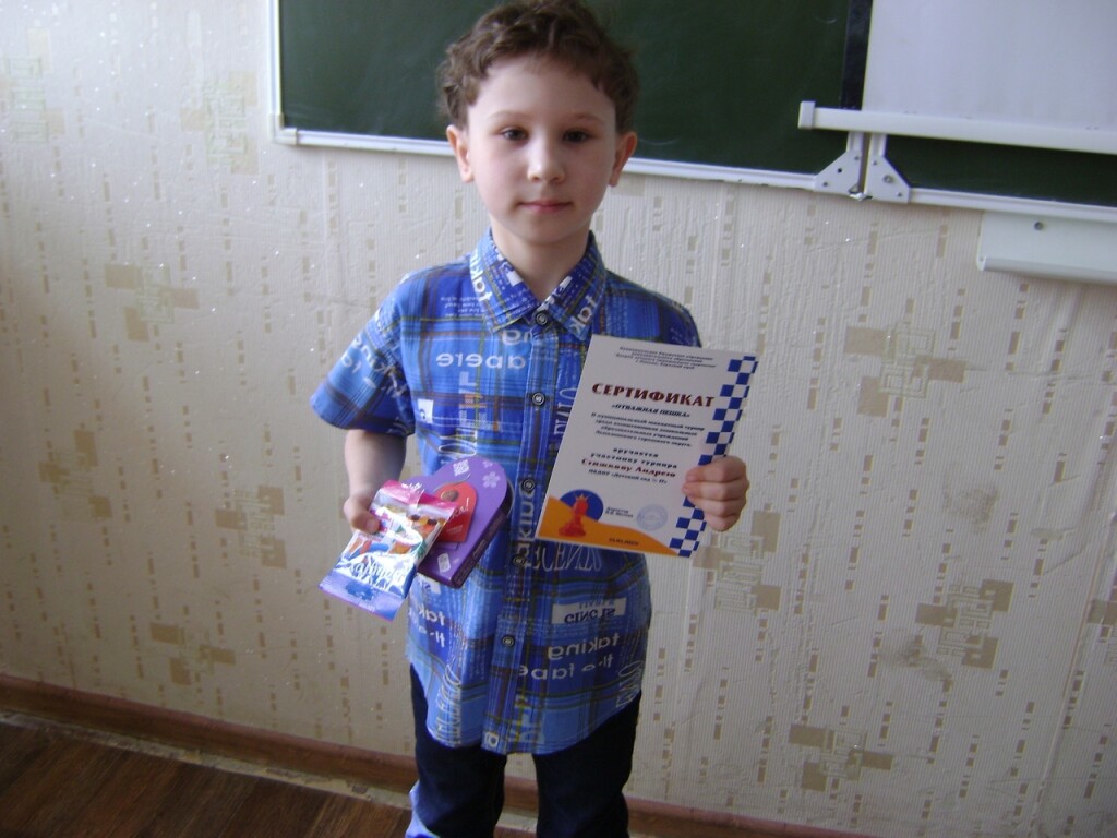 24 апреля состоялся муниципальный шахматный турнир "Отважная пешка", в котором принял участие воспитанник подготовительной группы Андрей Стяжков (воспитатели Лариса Аркадьевна Метелева и Наталья Владимировна Сунцова). Андрей молодец, достойно себя показал: одержал 2 победы и 1 ничья.