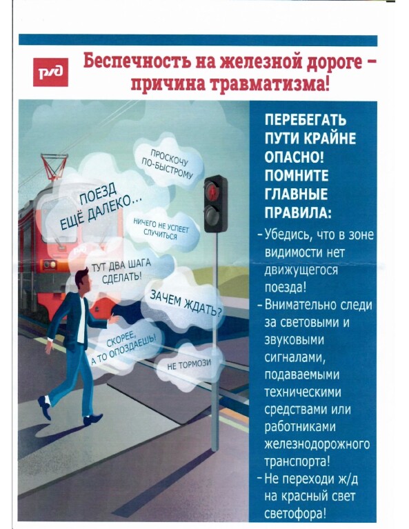 Основными причинами получения травм несовершеннолетних на объектах железнодорожного транспорта являются грубые нарушения несовершеннолетними правил безопасности на железнодорожном транспорте: хождение по путям в неустановленных местах, нежелание пользоваться пешеходными переходами, тоннелями, настилами, незнание правил безопасности на железнодорожном транспорте. С целью предупреждения детского травматизма на объектах ж/д транспорта , недопущения правонарушений, Пермский линейный отдел МВД России на транспорте разработал памятки по безопасному поведению на объектах ж/д транспорта.