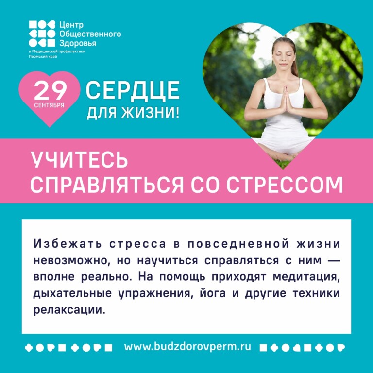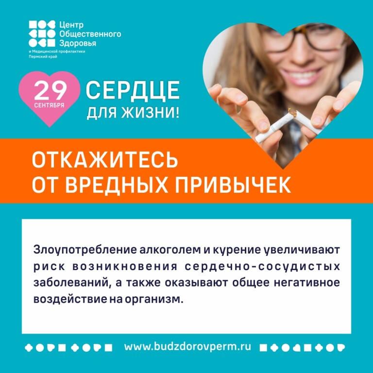 ГБУЗ ПК «Центр общественного здоровья и медицинской профилактики» информирует о проведении в период с 9 сентября по 5 октября 2025 года Недели ответственного отношения к сердцу (в честь Всемирного дня сердца 29 сентября).